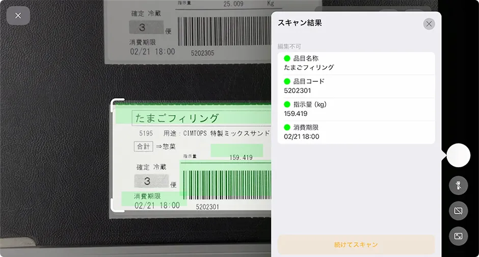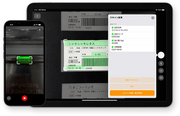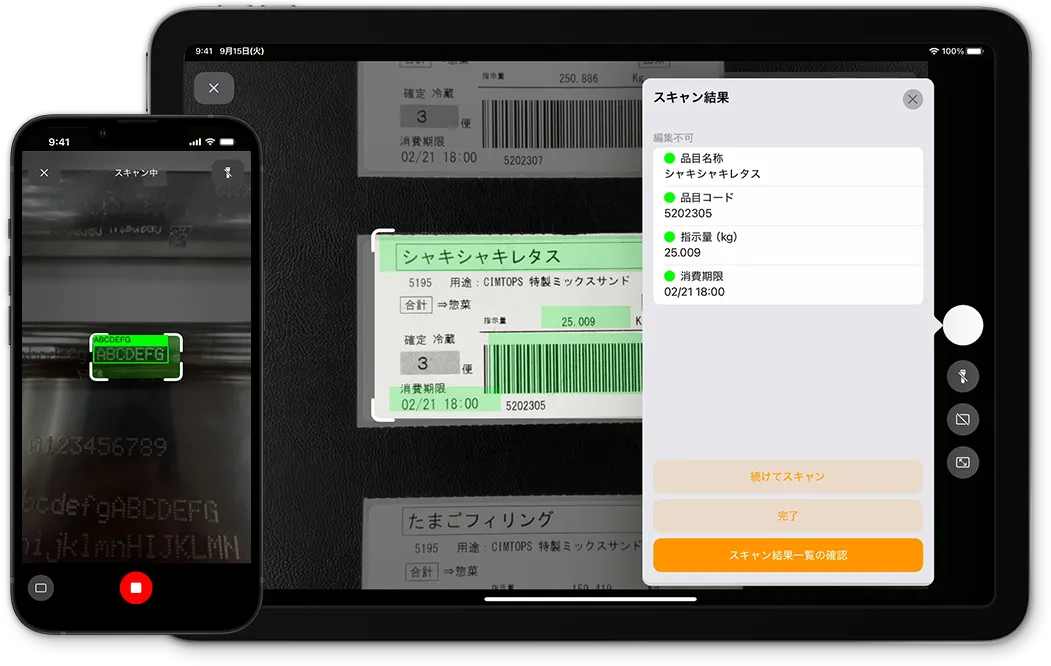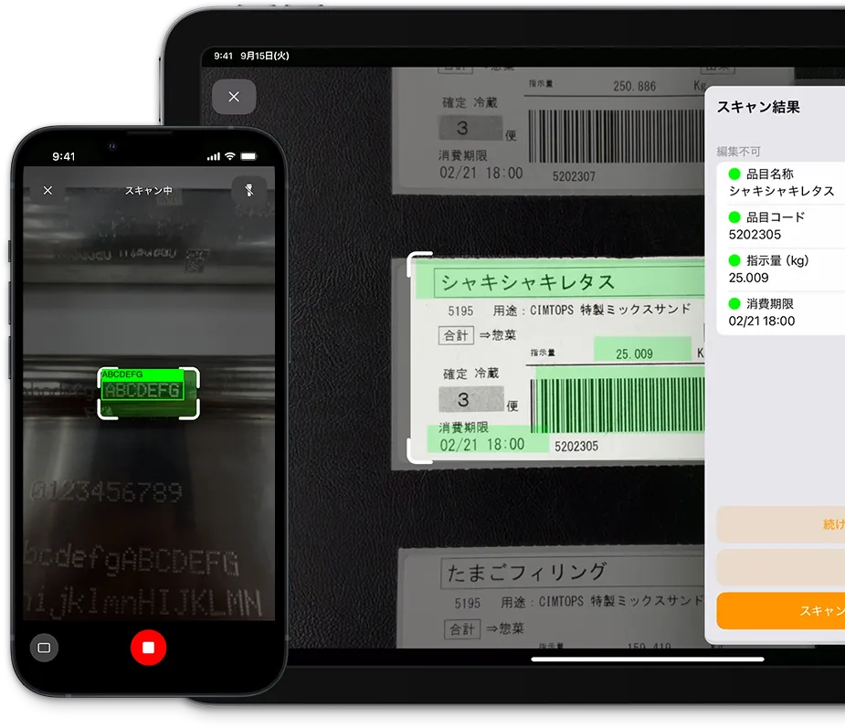 バーコードとテキストの同時読み取りも実現。